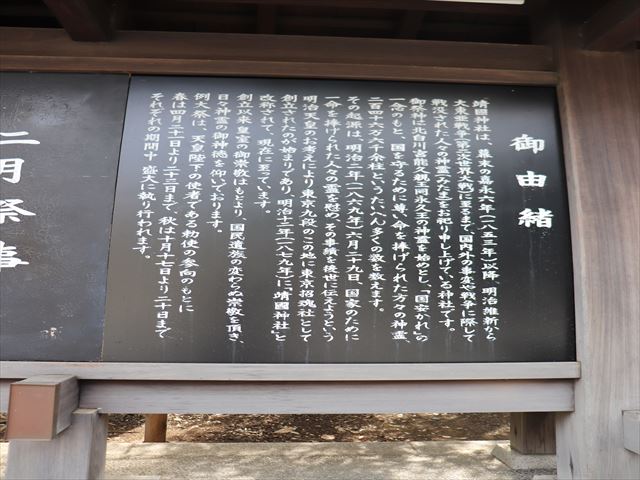 明治2年(1869)、明治天皇の思し召しによって建てられた招魂社がはじまり。明治天皇が命名された「靖國」という社号は、「国を靖(安)んずる」という意味で、靖國神社には「祖国を平安にする」「平和な国家を建設する」という願いが込められてる。