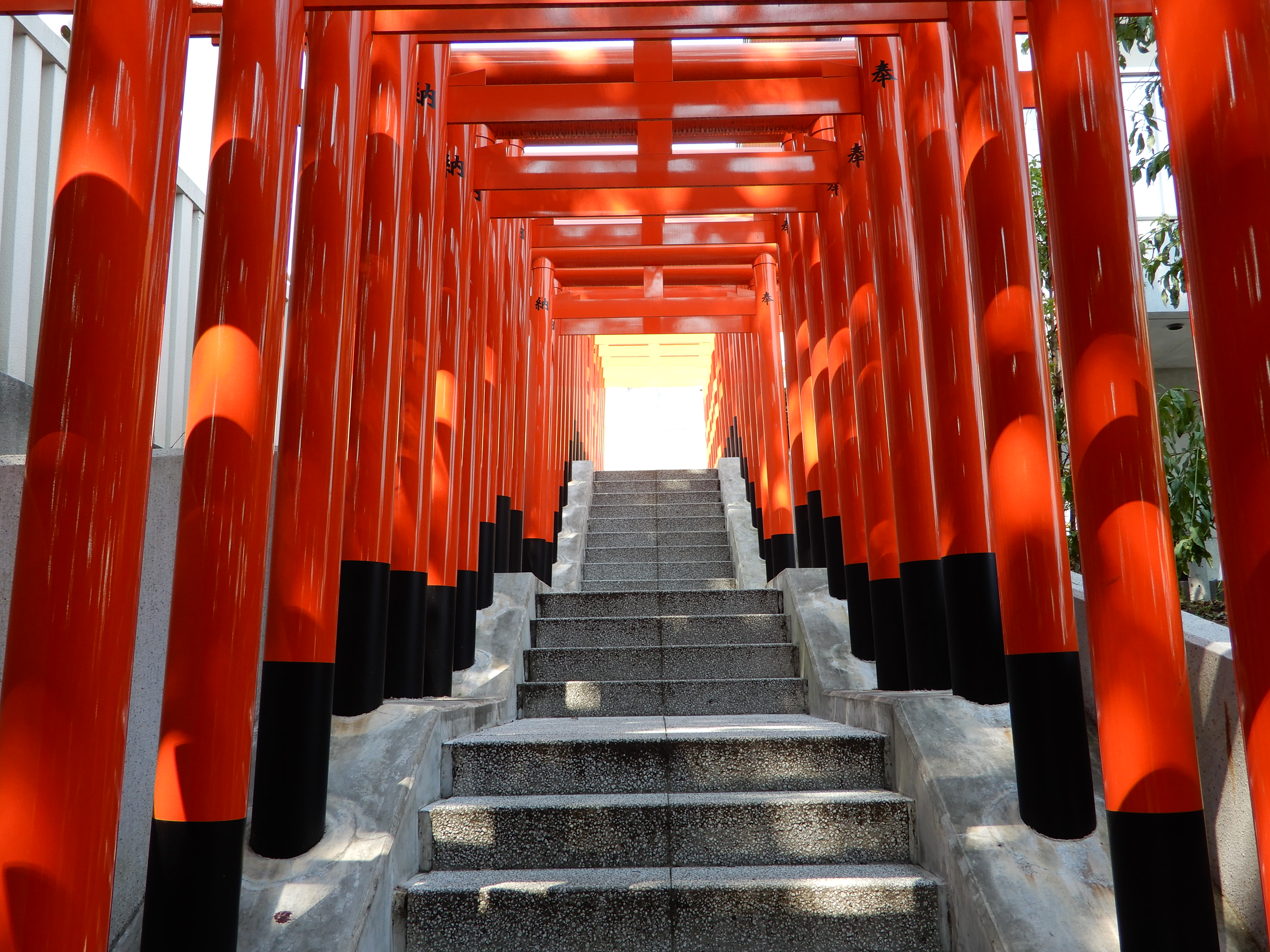 八坂神社、伏見稲荷神社に至る階段は多くの鳥居で囲まれており、横浜ではなかなか見ない光景が広がります。