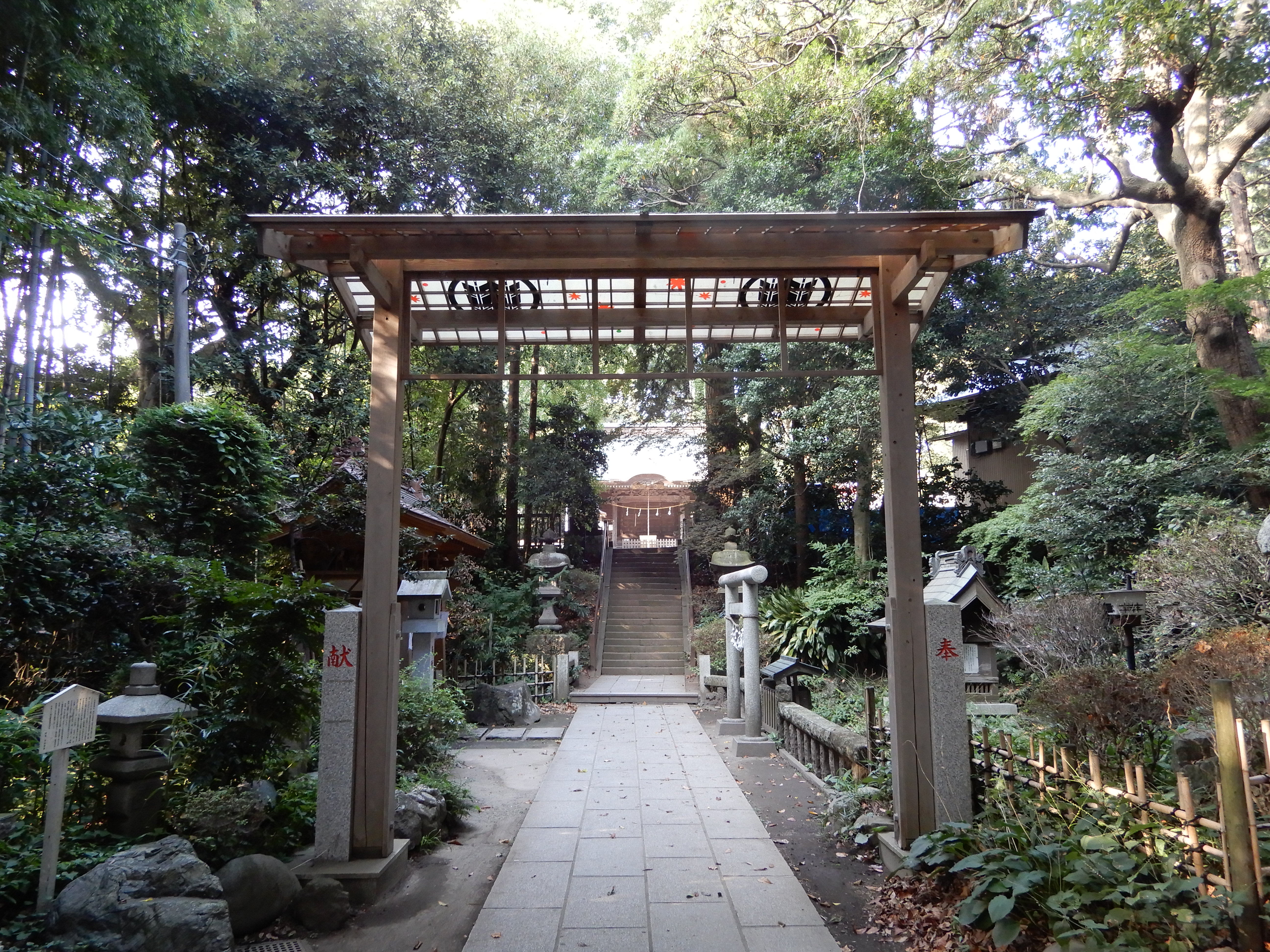 第1の鳥居をくぐり本殿まで向かうまでには池があり、大変心安らぐアプローチとなっています。