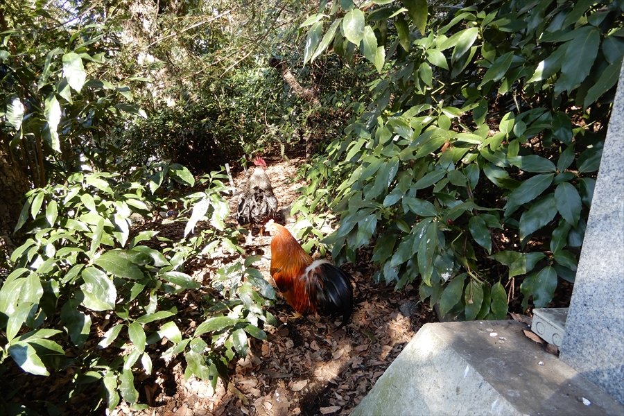 天満宮としては珍しく、神の使いとしてニワトリが放し飼いされている。