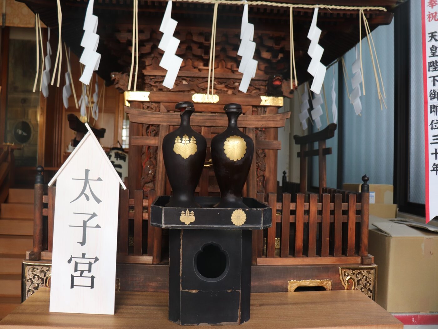 室町中期明応年中創建、お稲荷様、八幡様、猿田彦様をお祀りし、境内社には聖徳太子様をお祀りする。恒例の初詣、鎮火祭、節分祭、中祭、例祭、七五三詣の他、三年に一度神社大神輿の渡御が例祭日に近い日曜日に斉行されます。
